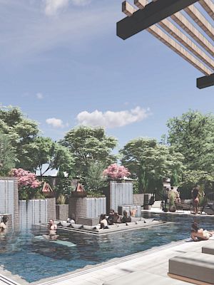 Up on the deck, poolside becomes a state of mind. Bask, dip, and dine with ease—Sky Swim Lounge tables bring food and drinks to you, as the scene moves from sun-splashed daytime to softly lit nights.